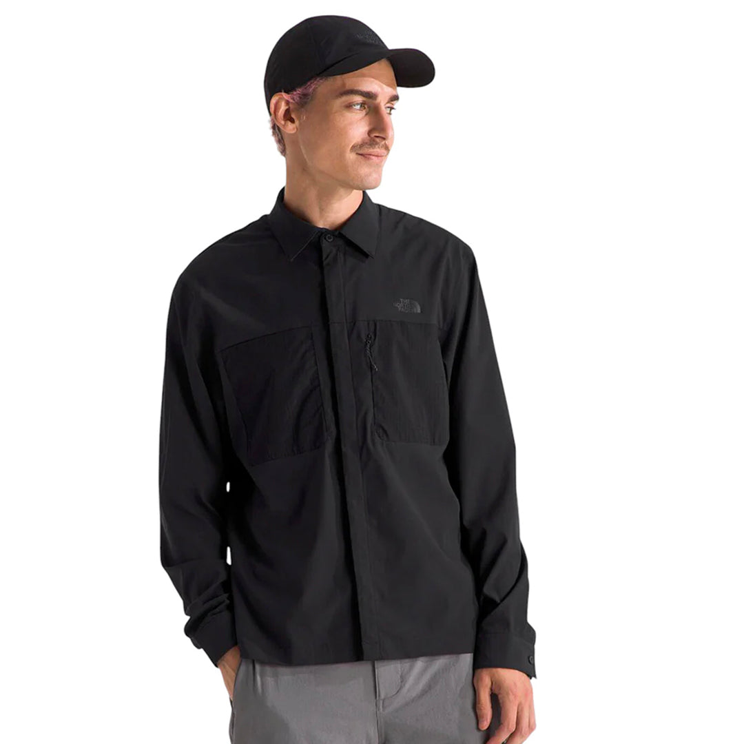 La camisa de manga larga LIGHTRANGE™ para hombre ofrece UPF 40+, tecnología antiolor, control de humedad, ventilación trasera y acabado repelente al agua sin PFC. Con cierre frontal oculto, broche en el cuello, bolsillo con cierre y ajuste regular. Tejido principal 82% poliéster reciclado y forro 100% reciclado, con diseño circular para su reciclaje.