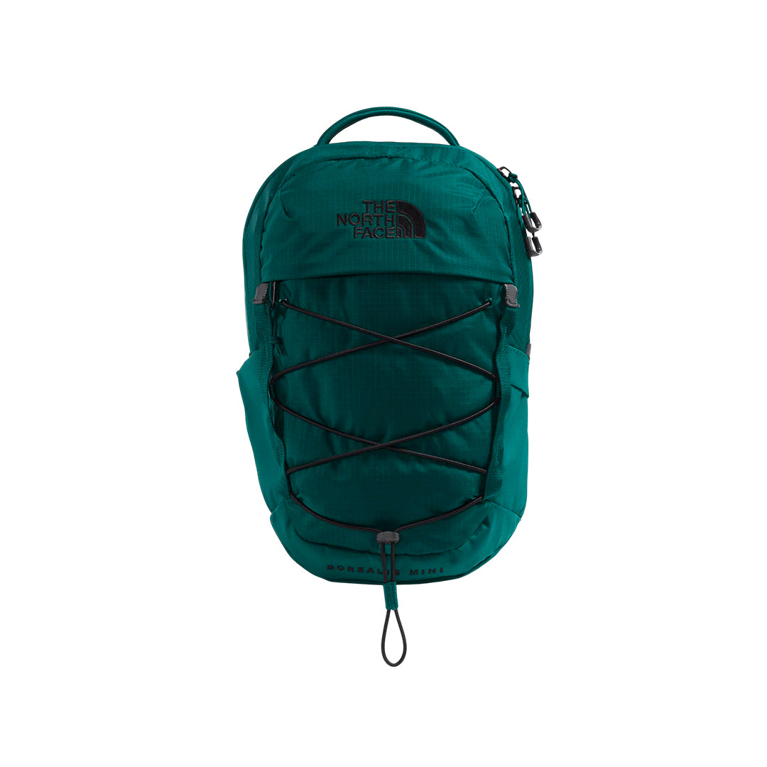 Borealis Mini unisex color turquesa (10 L): bungee frontal de compresión, bolsillo interno, dos portabotellas (uno con acceso rápido a smartphone), cremalleras en U y asa superior acolchada. 340 g; nylon ripstop 210D reciclado con DWR sin PFC.